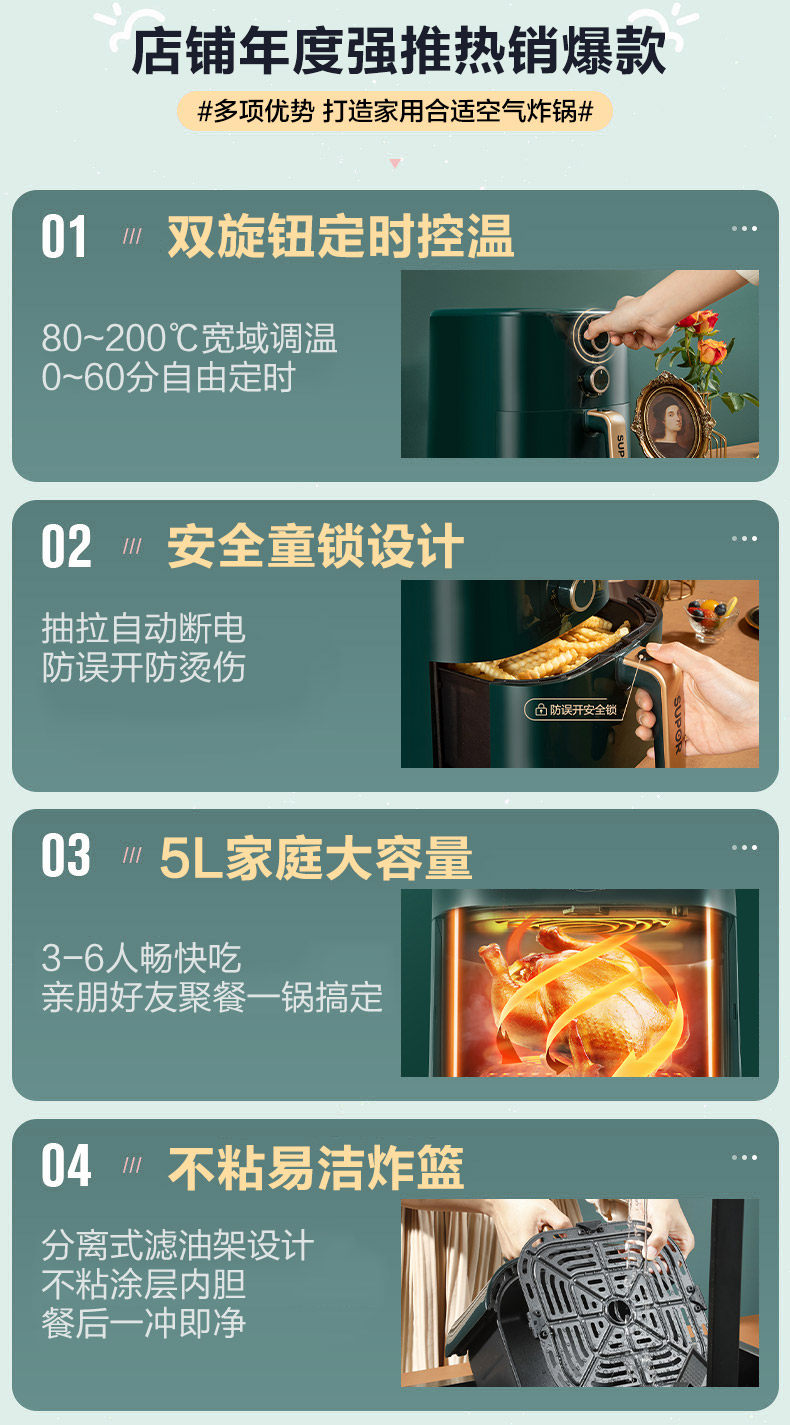 【政府补贴】苏泊尔空气炸锅2025新款家用可视大容量电炸锅免翻面