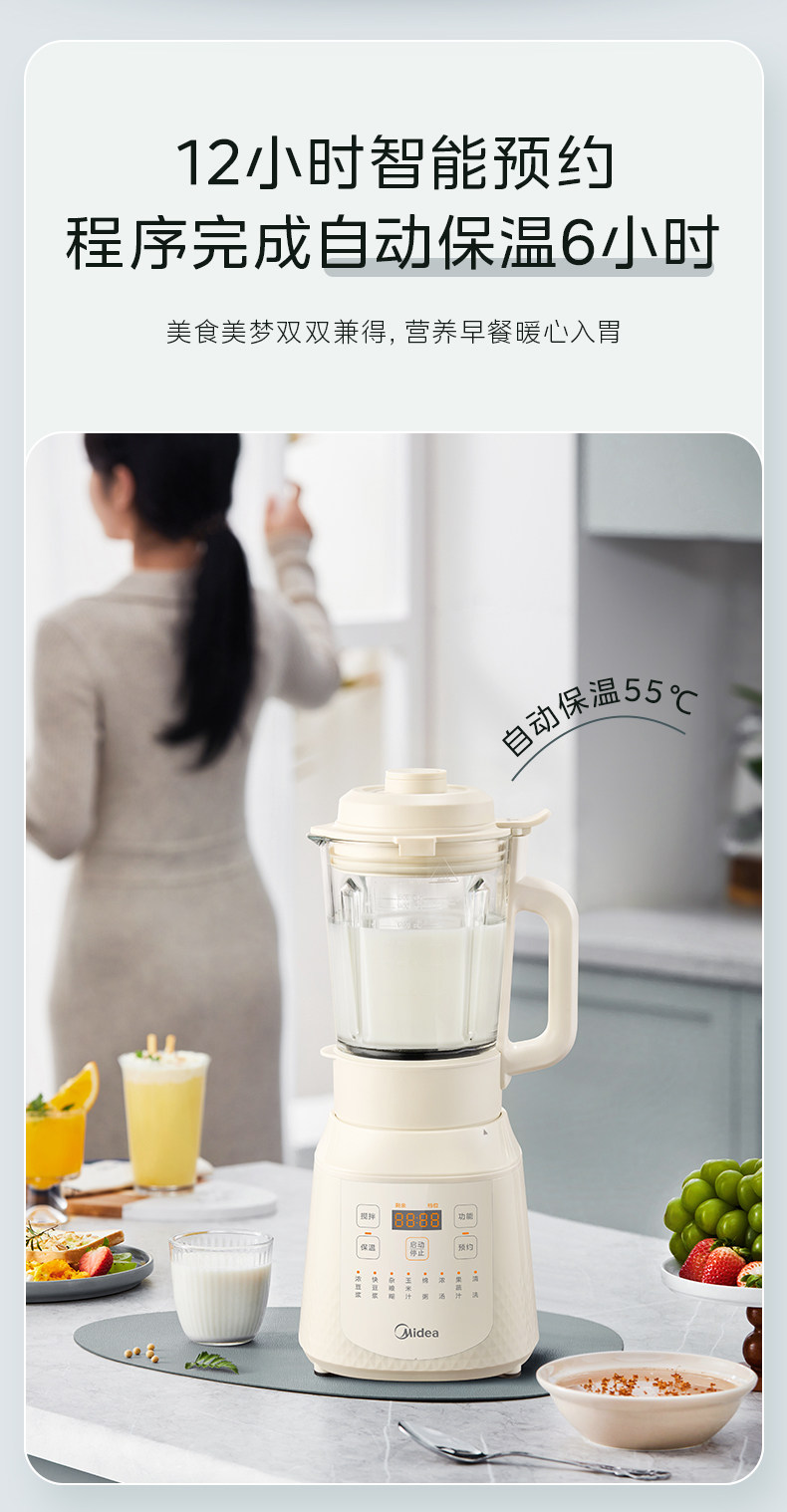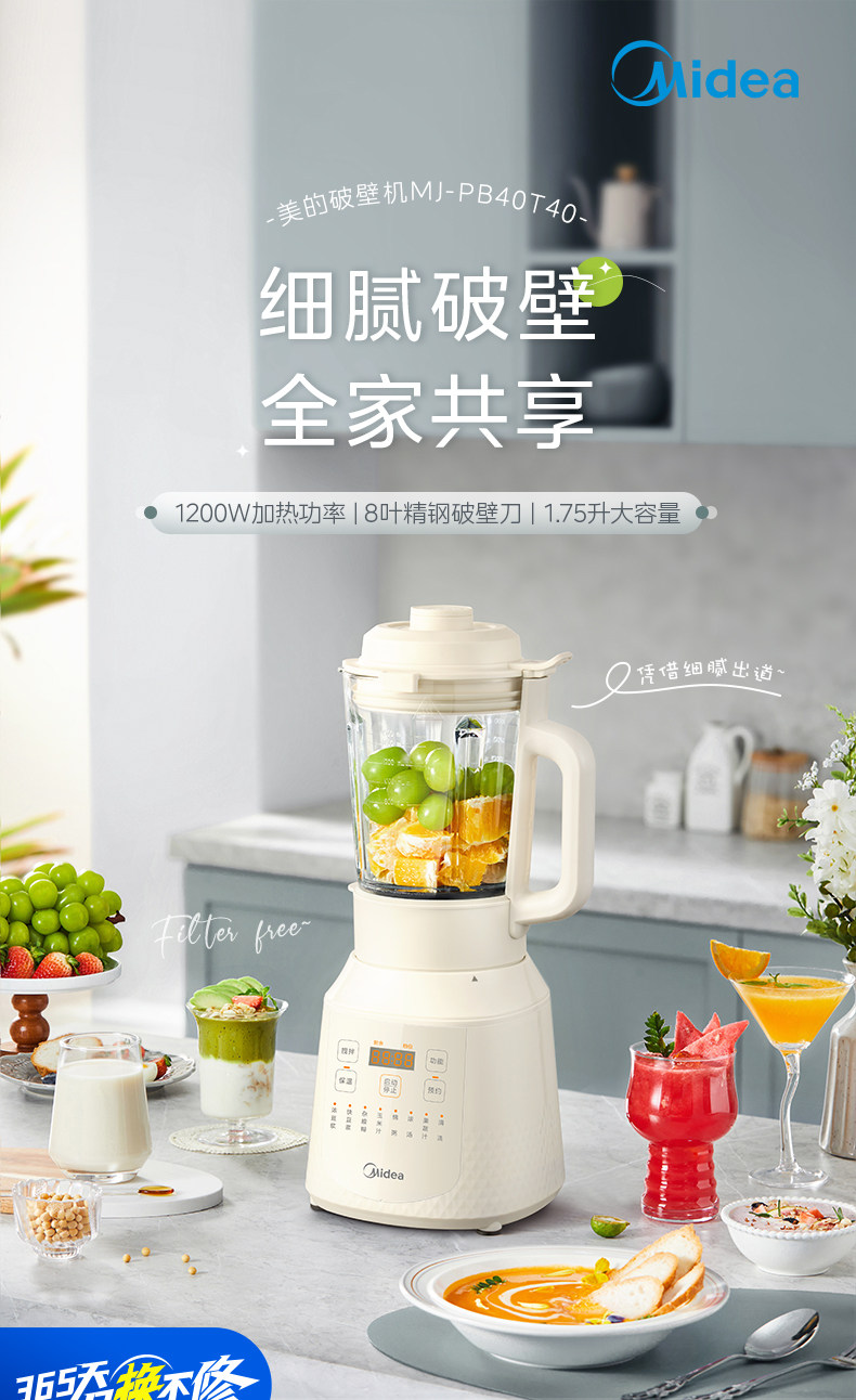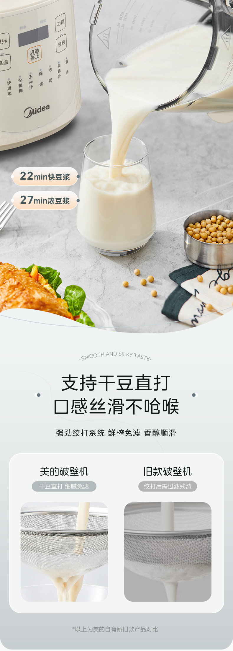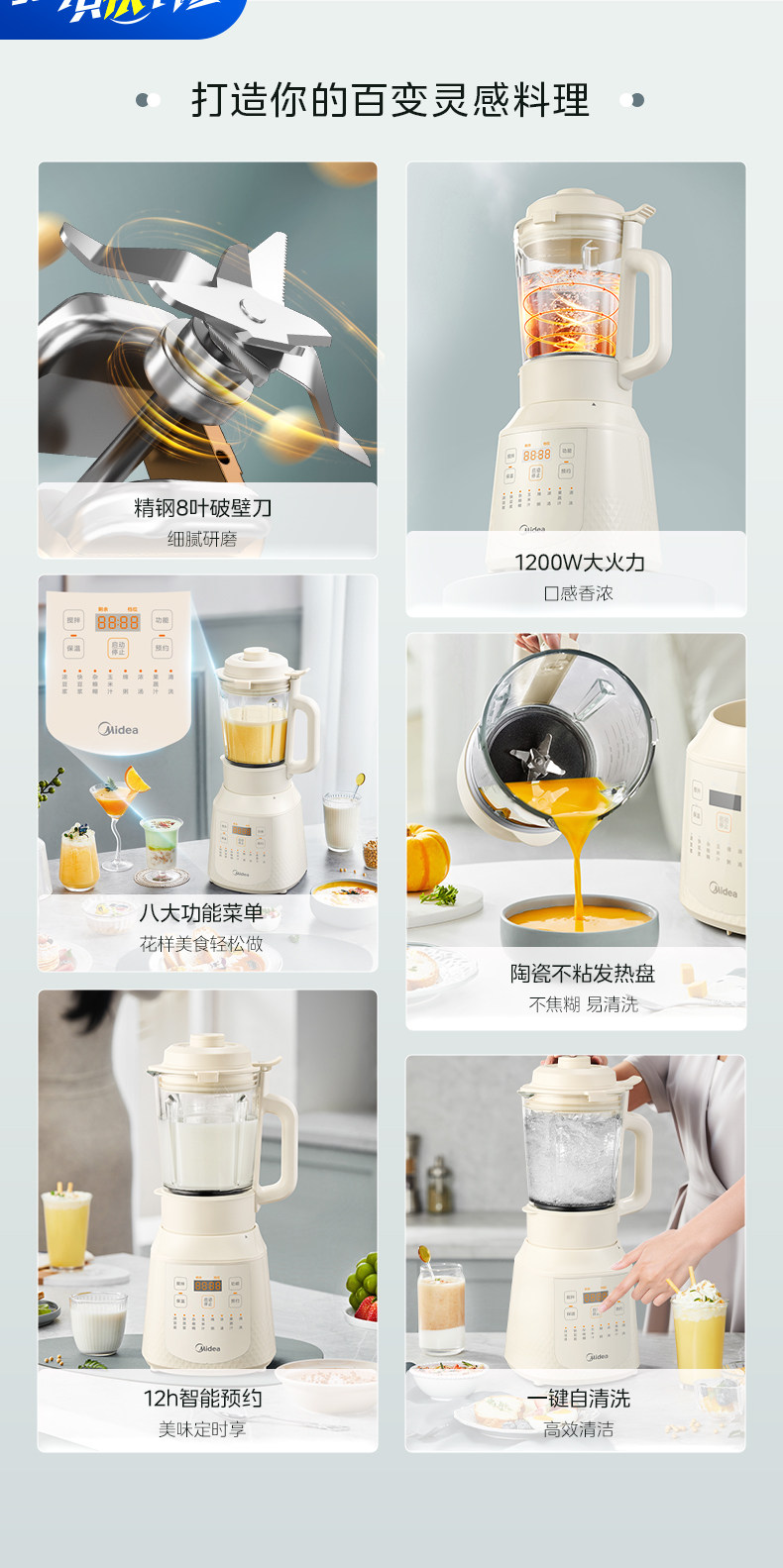 美的破壁机家用豆浆机全自动静音无渣小型多功能榨汁机官方正品新