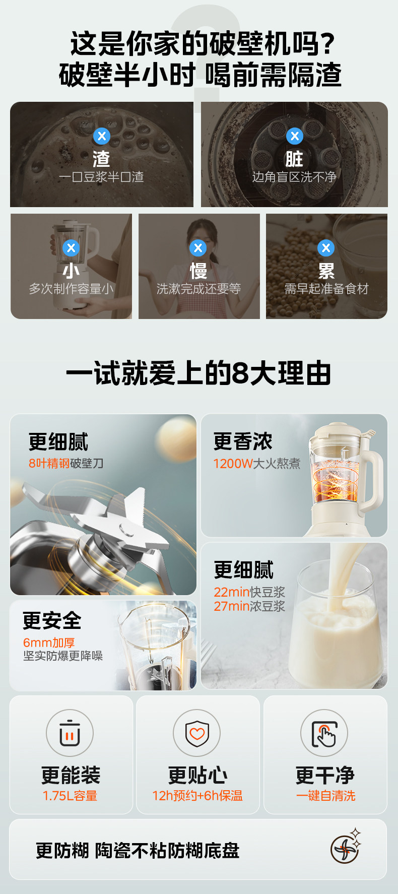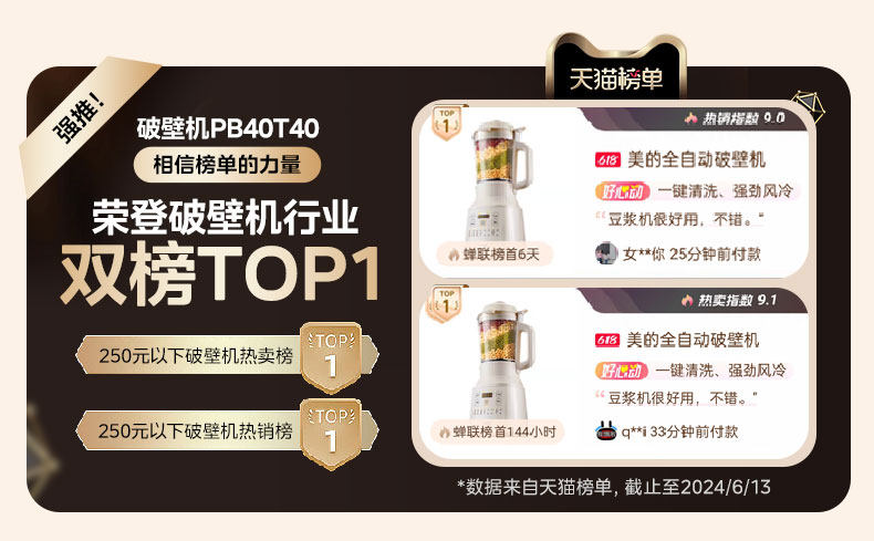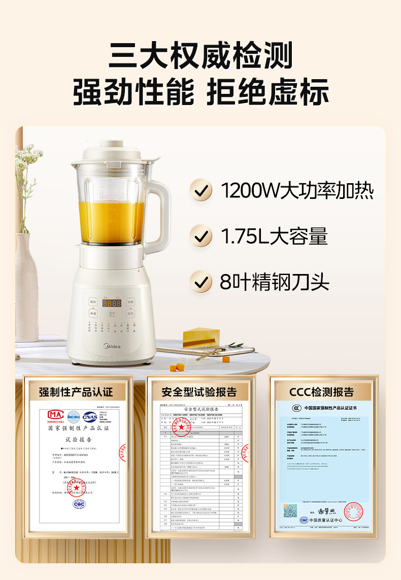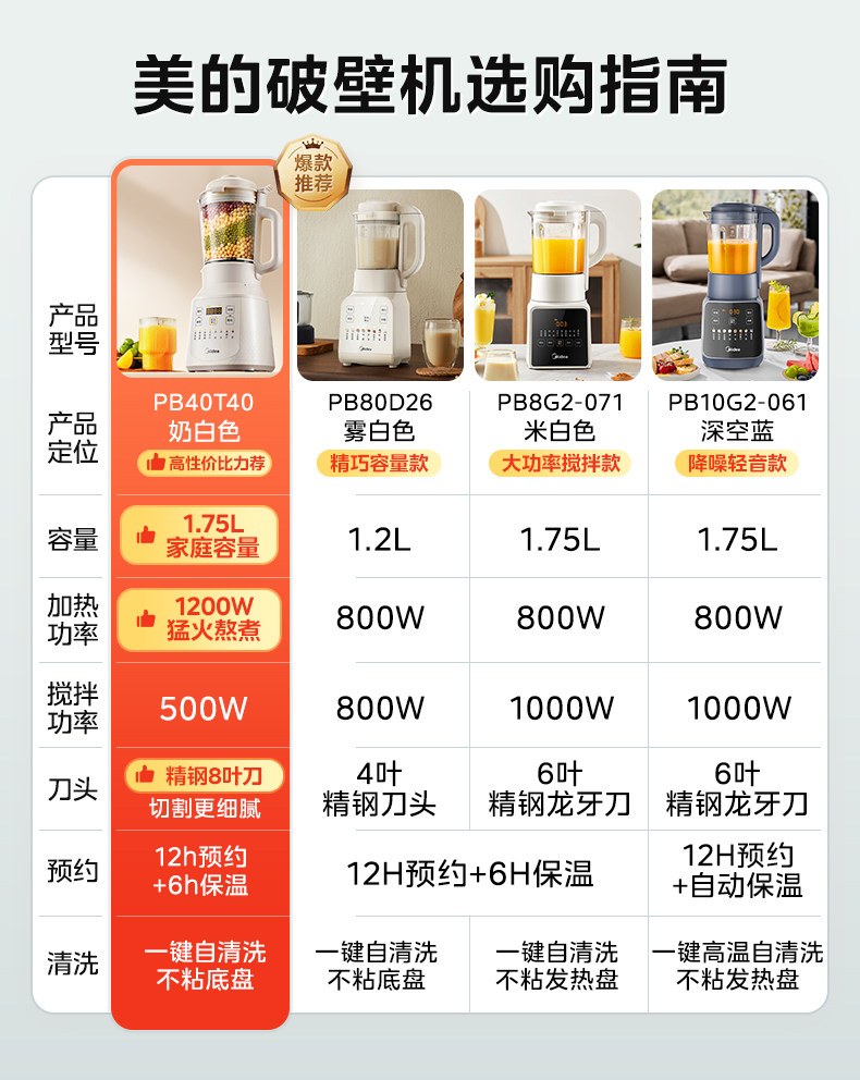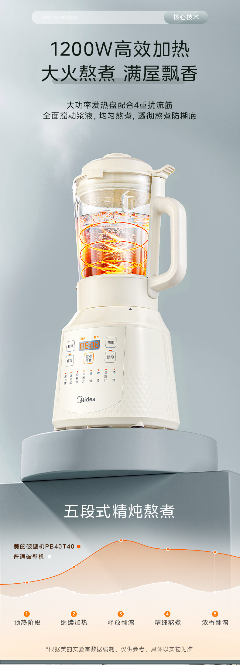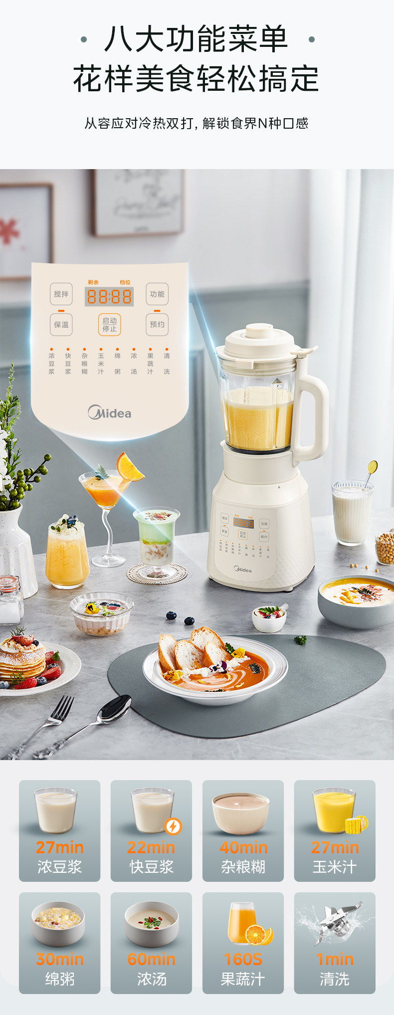 美的破壁机家用豆浆机全自动静音无渣小型多功能榨汁机官方正品新