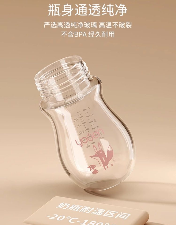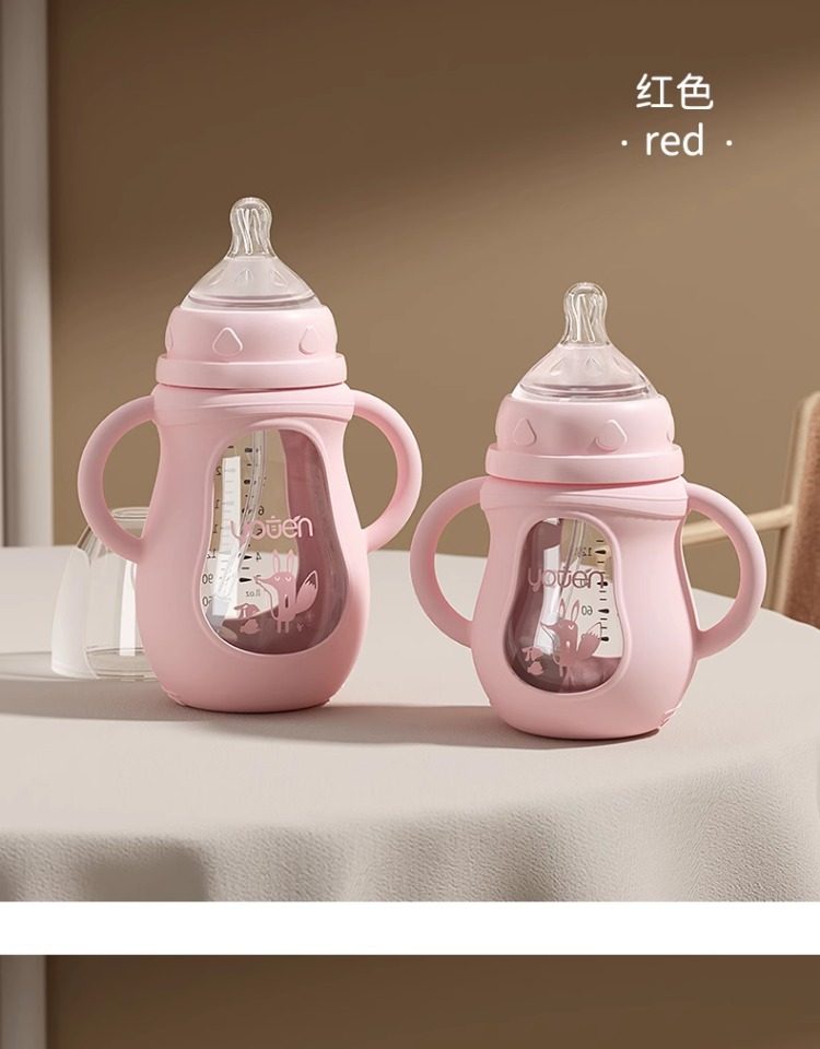 婴儿玻璃奶瓶防胀气防摔防呛新生儿宝宝鸭嘴吸管喝水杯0-3到6个月