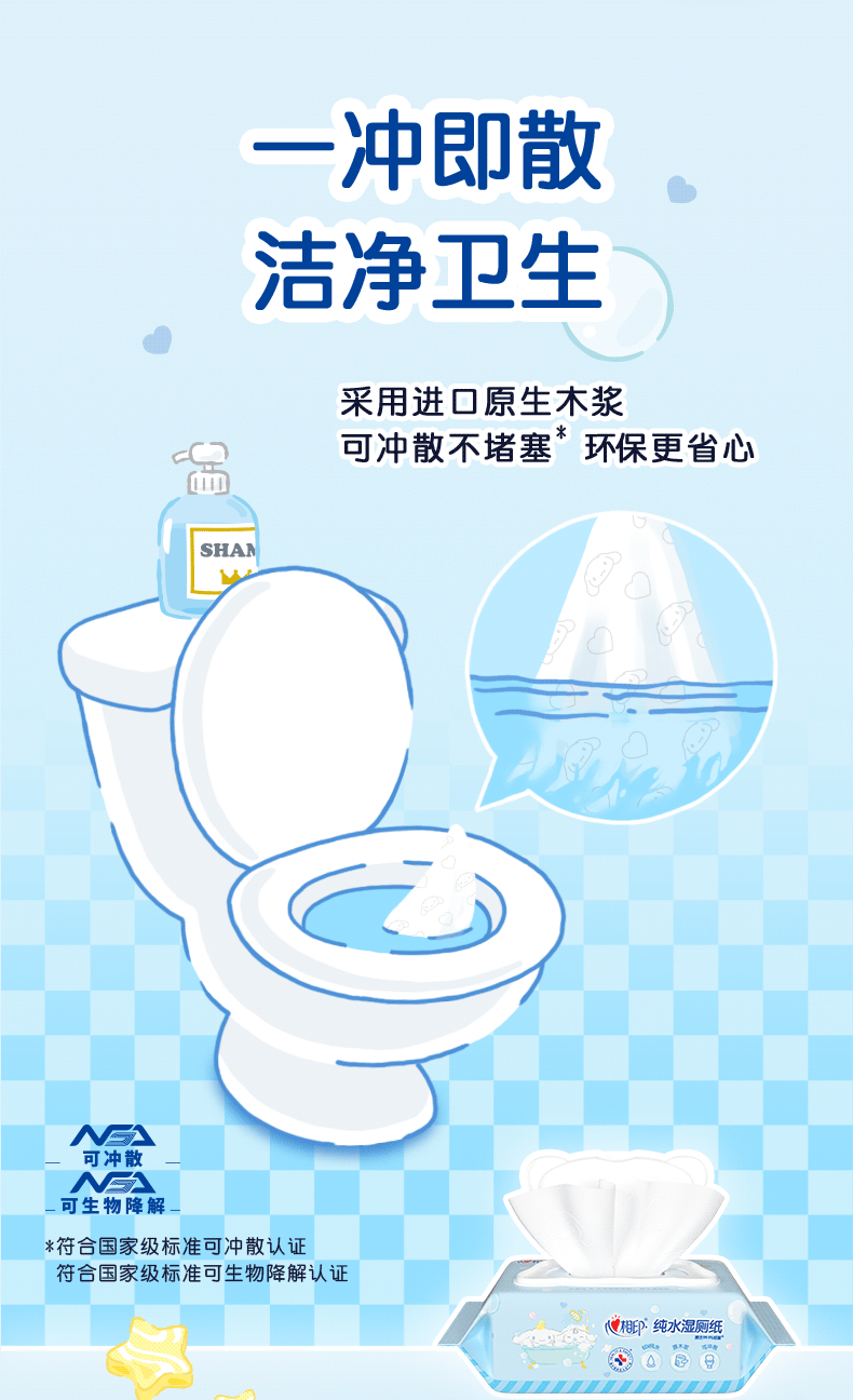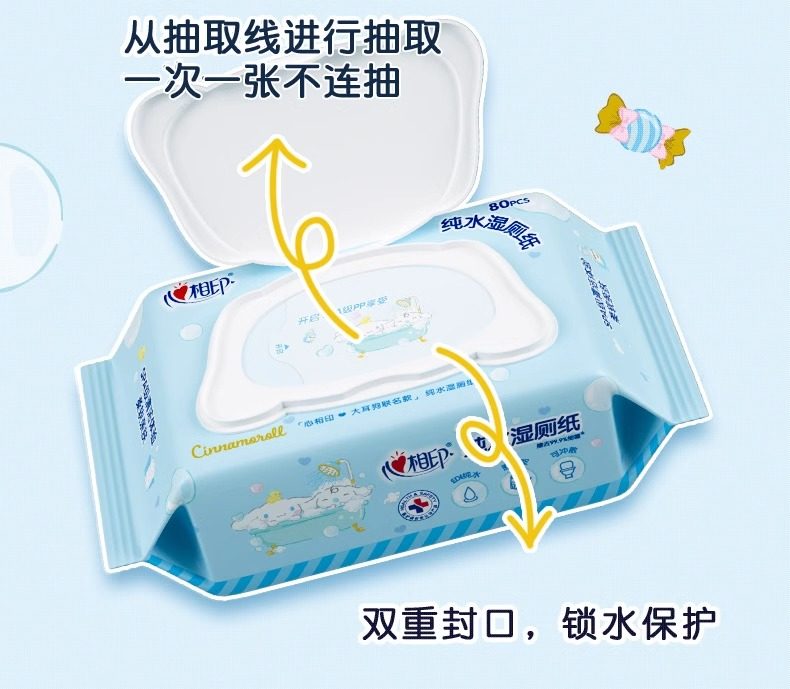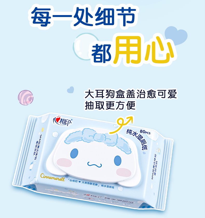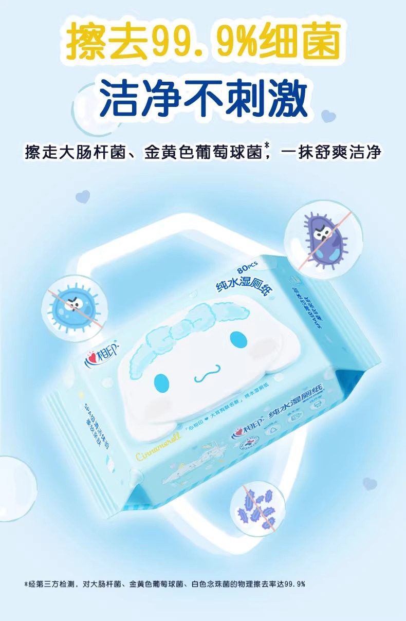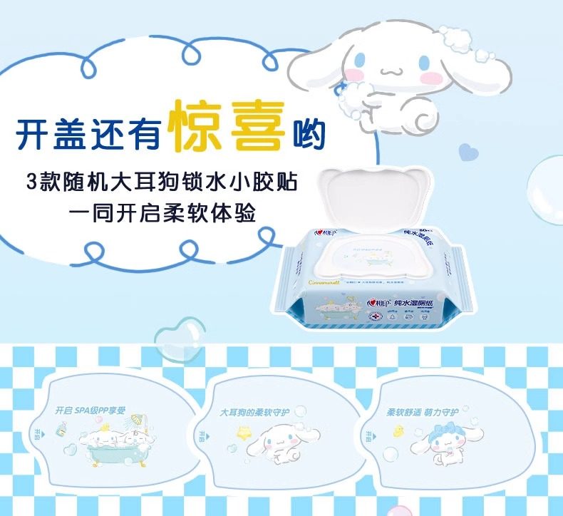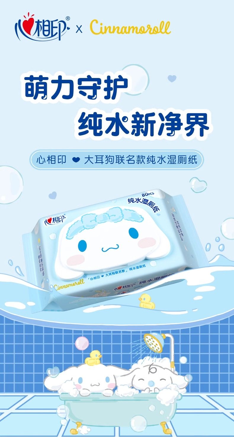 心相印湿厕纸三丽鸥大耳狗联名纯水80抽家用擦屁屁大包女性湿巾纸