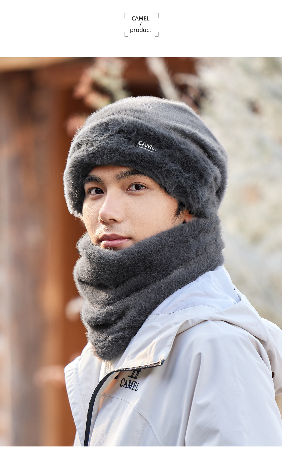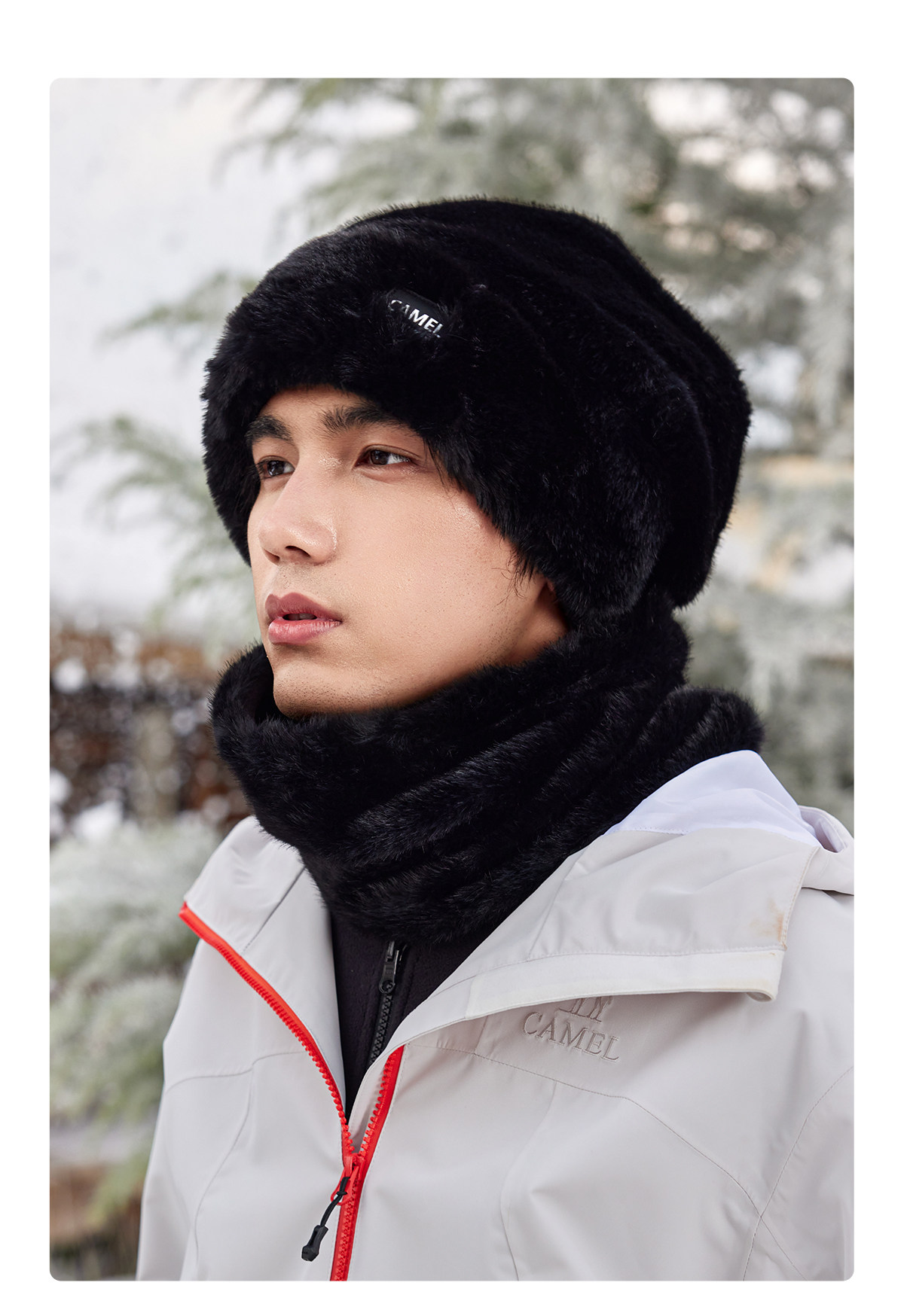 骆驼毛绒保暖帽2025年新款男帽子围脖两件套仿貂毛加绒加厚包头帽