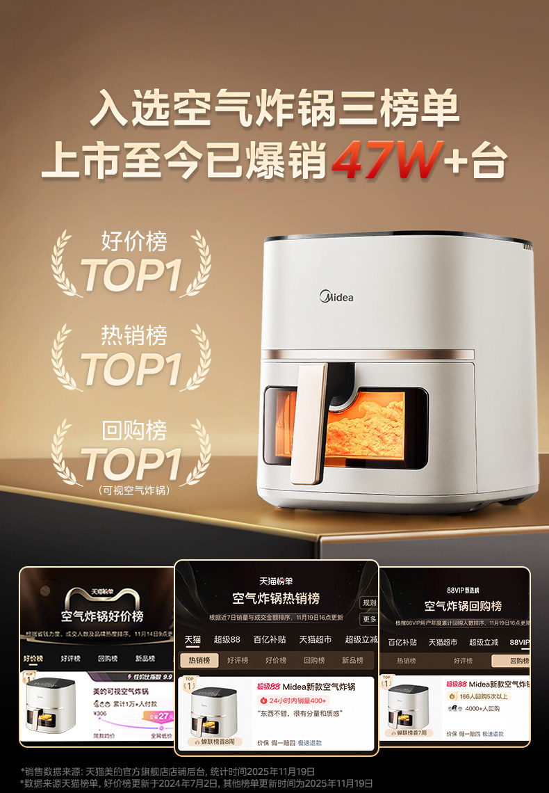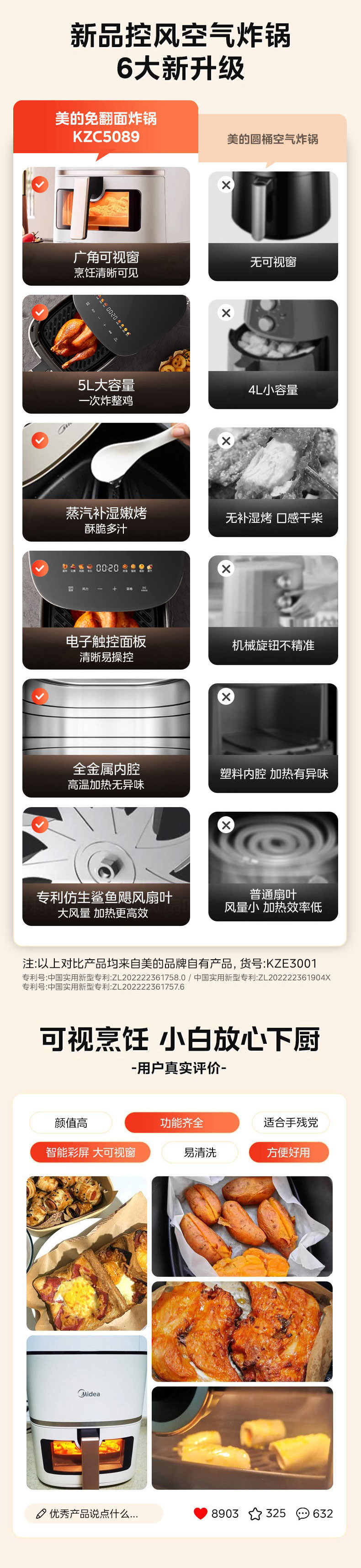 美的空气炸锅家用新款触控电烤箱大容量可视电炸锅一体机官方旗舰
